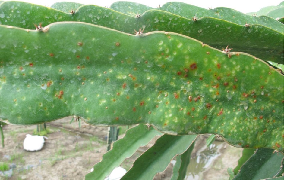 Bệnh đốm nâu thanh long từng được xem là “nan y” với nhiều vựa thanh long lớn. Từ đầu mùa mưa năm 2012, bệnh lây lan mạnh, với diện tích gần 1.000 ha, tỷ lệ nhiễm nặng từ 10% trở lên chiếm trên 80% và gây hại từ 20 – 50%.